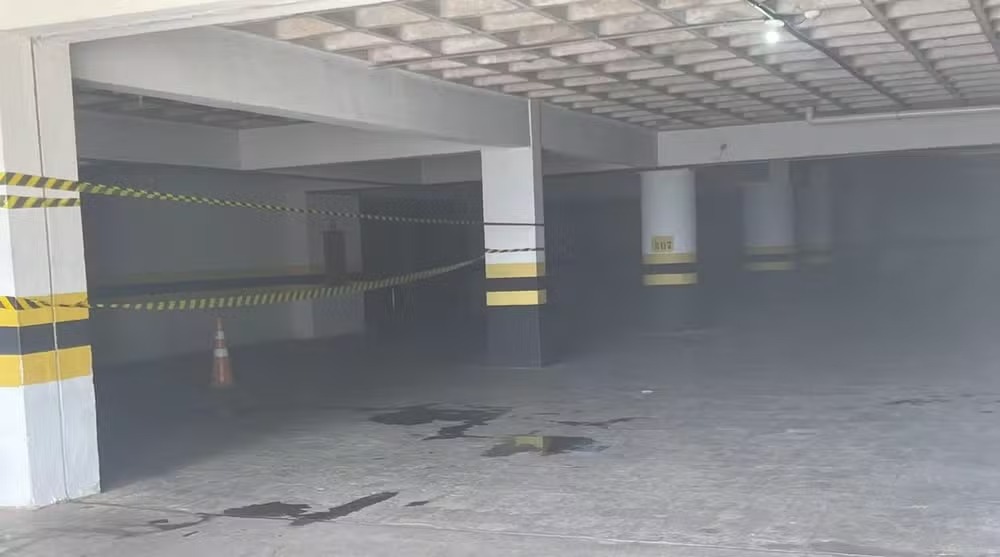 Carro pega fogo em estacionamento de edifício em Cuiabá