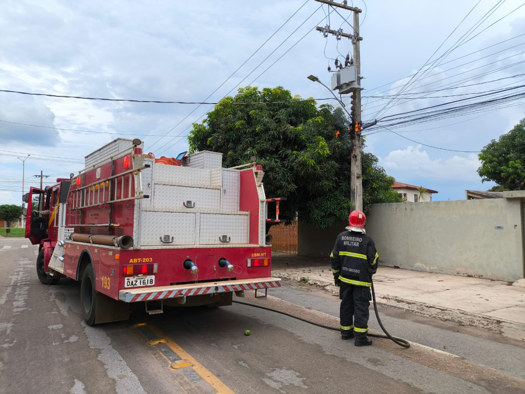 Bombeiros combatem incêndio em poste de energia elétrica em Campo Verde