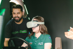 A capacitação de operadores também ganha um novo patamar, com o Áster Land Simulator. O simulador desenvolvido em realidade virtual permite aos usuários vivenciarem a operação de colhedora de algodão em um ambiente imersivo. Os visitantes puderam experimentar em primeira mão a tecnologia, que com óculos de realidade virtual e usando as próprias mãos, proporciona uma imersão realista e educativa.