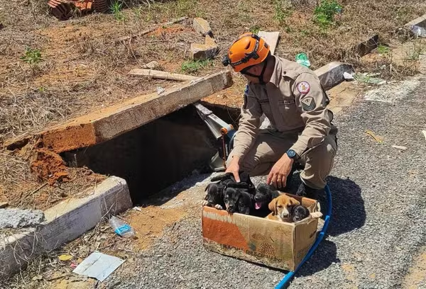 Filhotes de cachorro são resgatados de bueiro em MT