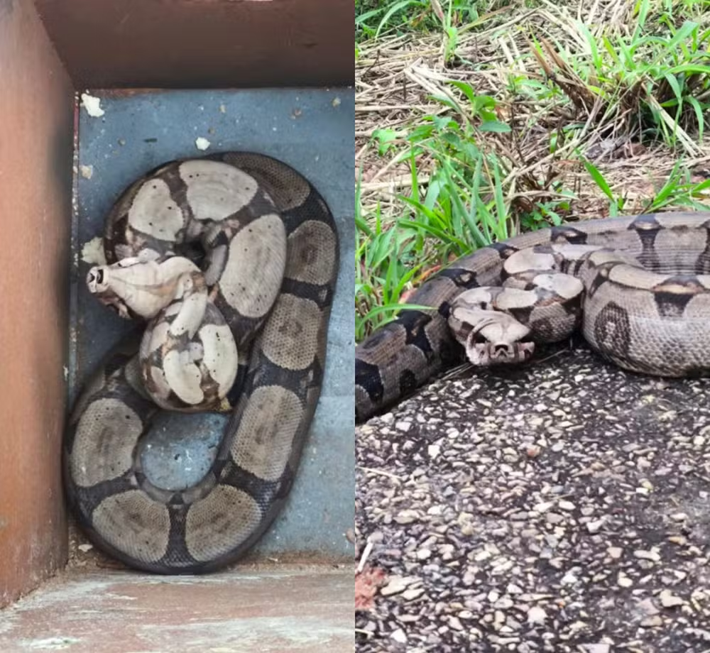 Duas jiboias são resgatadas em avenidas movimentadas de Primavera do Leste (MT)