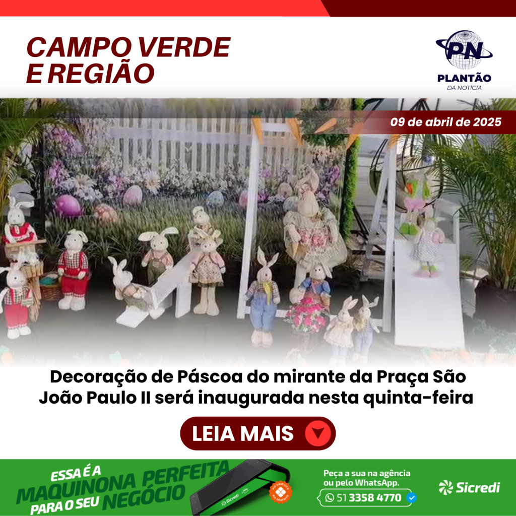 Como acontece todos os anos, a Secretaria Municipal de Desenvolvimento Econômico de Campo Verde está decorando o mirante da torre da Praça São João Paulo II com motivos da Páscoa. Os trabalhos de preparação do mirante começaram esta semana e, de acordo com a programação da Secretaria Municipal de Desenvolvimento Econômico, será aberta ao público […]