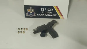 De acordo com a PM, a equipe foi acionada via 190 com a informação de que o suspeito estaria armado e promovendo confusão no local. Ao chegarem, os policiais encontraram o indivíduo do lado de fora do estabelecimento. Durante revista pessoal, foi localizada em sua posse uma pistola calibre 9mm, carregada com três munições intactas.